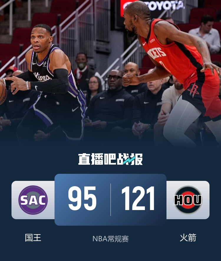 国王(5-17):雷诺25分6板3助、蒙克25分3板5助2断、威斯布鲁克12分4板9助、德罗赞12分2板、阿丘瓦10分4板2断、穆雷5分11板1助2帽、拉文2分1板1助2帽、尤班克斯2分1板、克利福德2分2助。